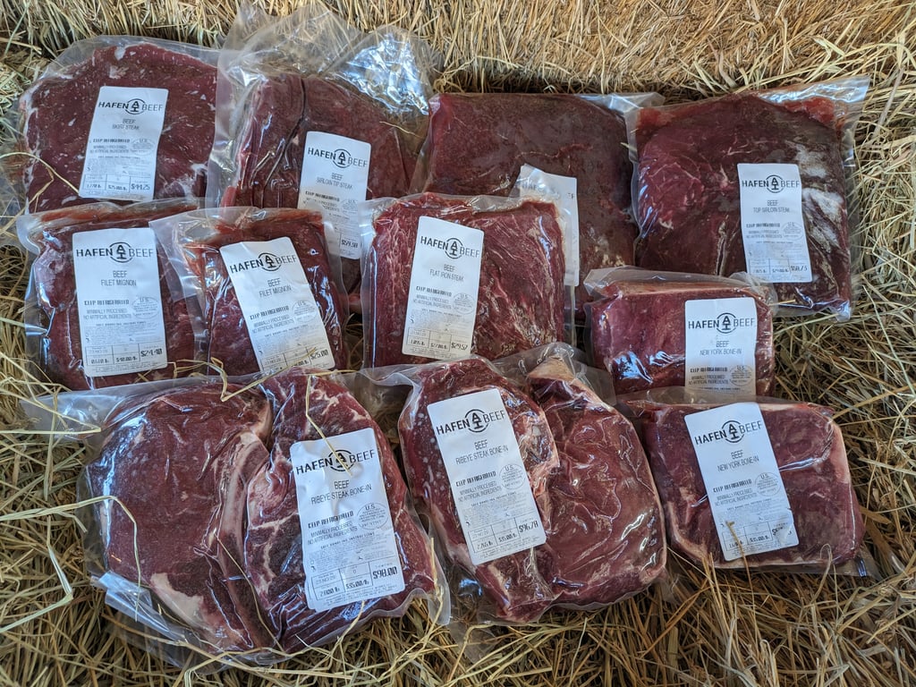 Visit our store to place a deposit on a bulk beef order. The deposit guarantees that we’ll have a beef share for you when it’s ready for processing. You can purchase 1/8, 1/4, or 1/2 of a beef (or one of our other packages). If you want more, you can order multiple options or increase the quantity.